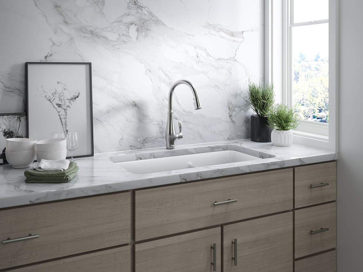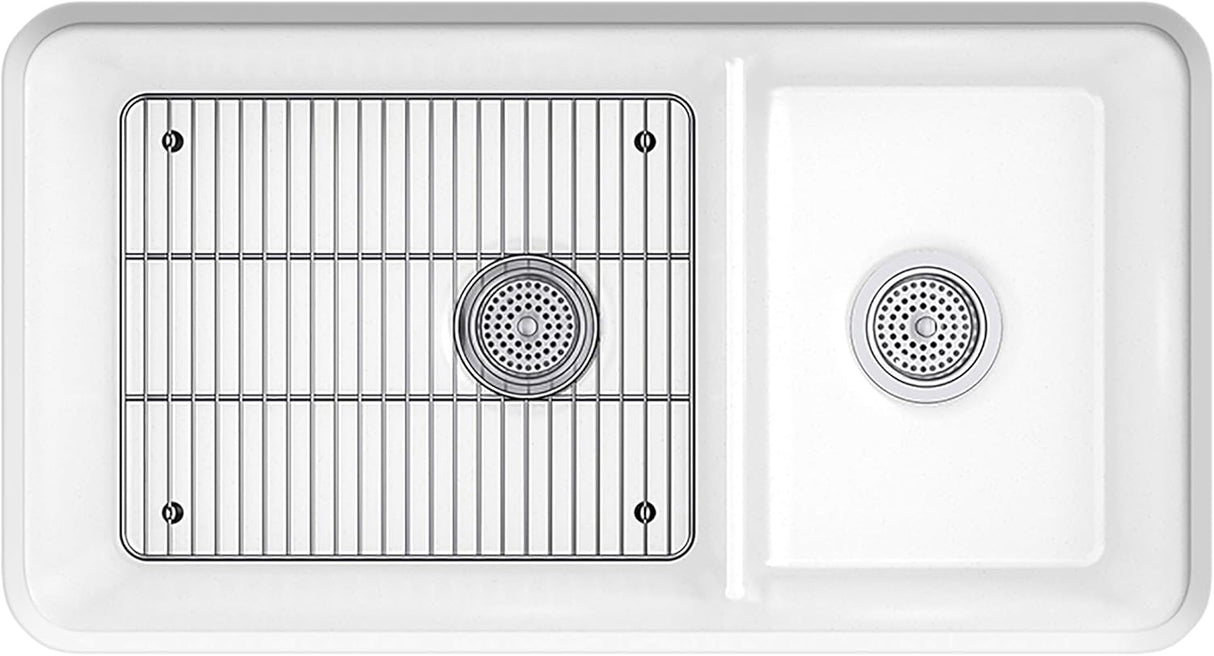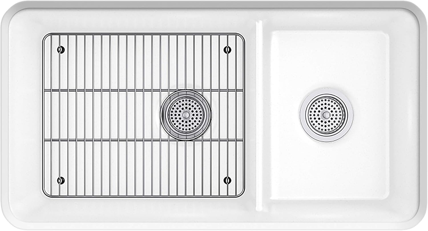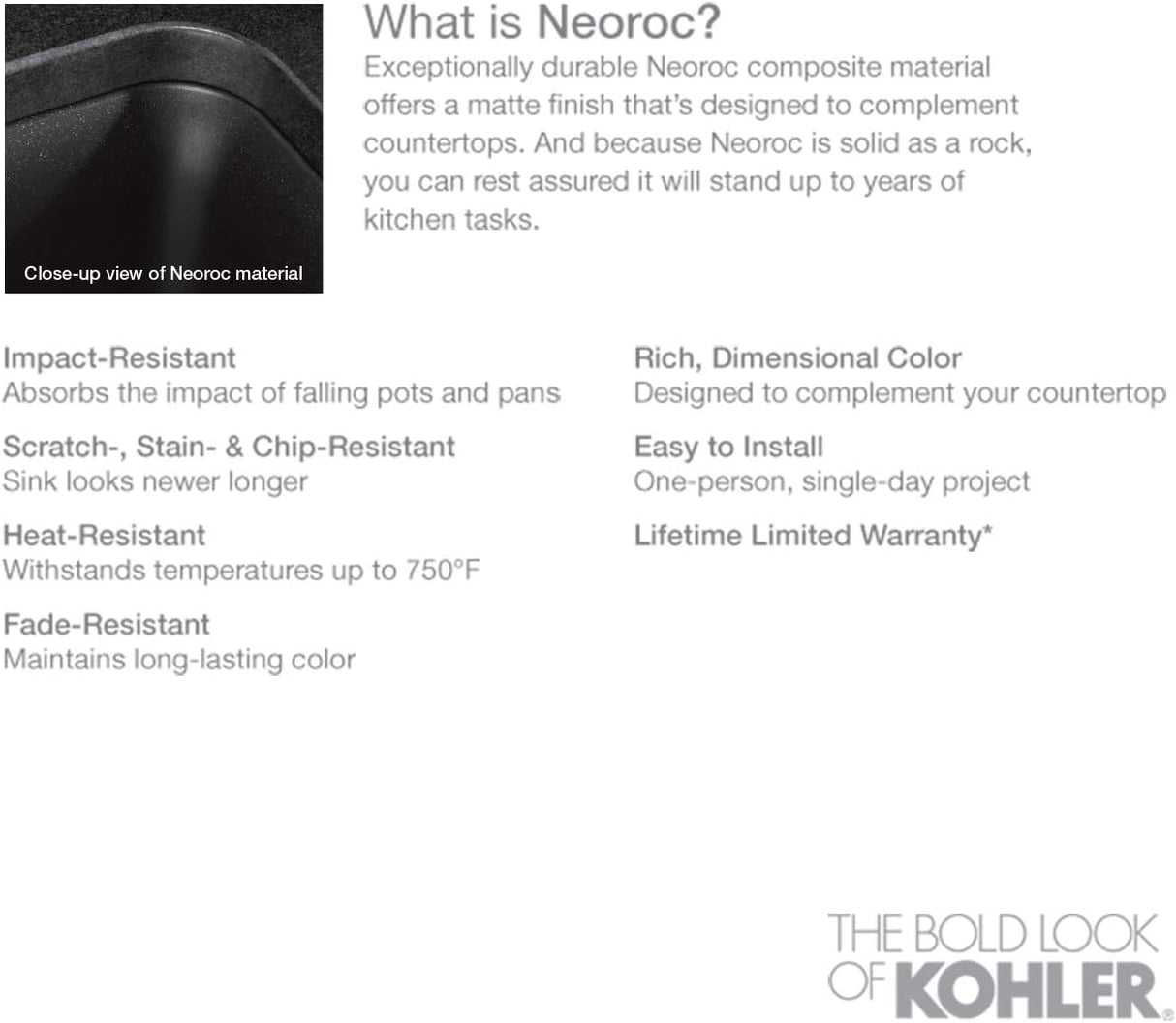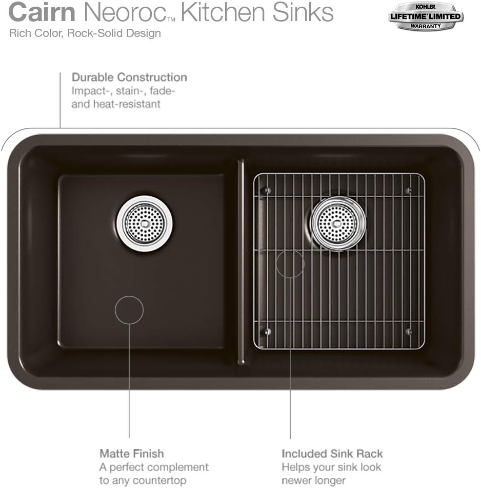 KOHLER K-8204-CM6 Cairn Sink, 33" Neoroc Composite Undermount Double-Bowl Kitchen Sink, Composite Kitchen Sink with Sink Rack, Matte White