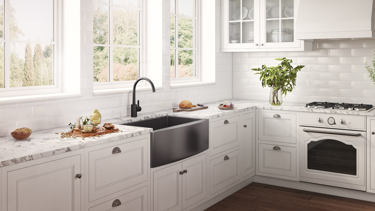- UNDERMOUNT APRON-FRONT: Requires base cabinet designed for apron-front (farmhouse) sinks.