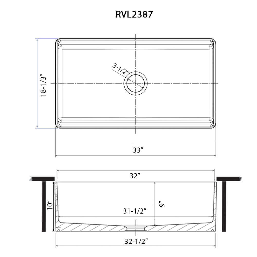- INTERIOR BOWL DIMENSIONS: 31" (wide) x 16" (front-to-back) x 9" (internal bowl depth)