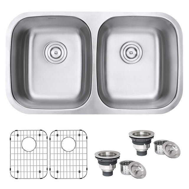 Ruvati 32-inch Undermount 50/50 Double Bowl 16 Gauge Stainless Steel Kitchen Sink - RVM4300