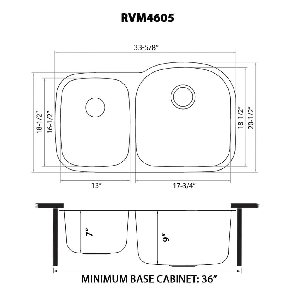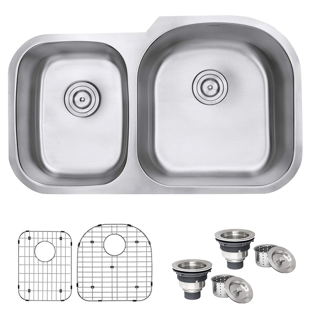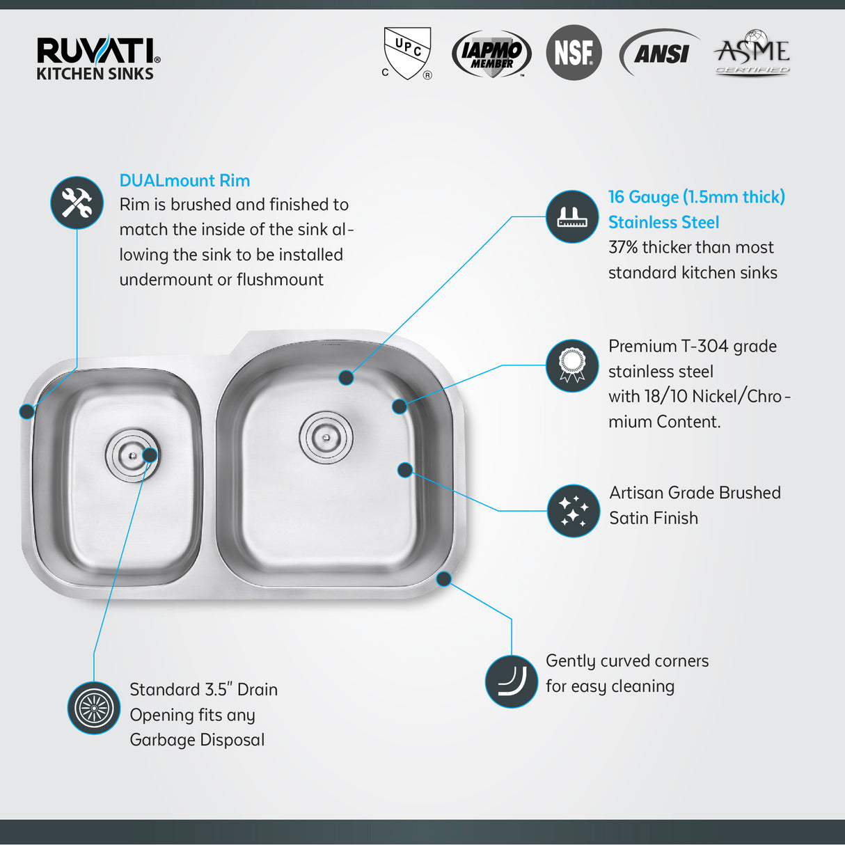 Ruvati 34-inch Undermount 40/60 Double Bowl 16 Gauge Stainless Steel Kitchen Sink - RVM4605