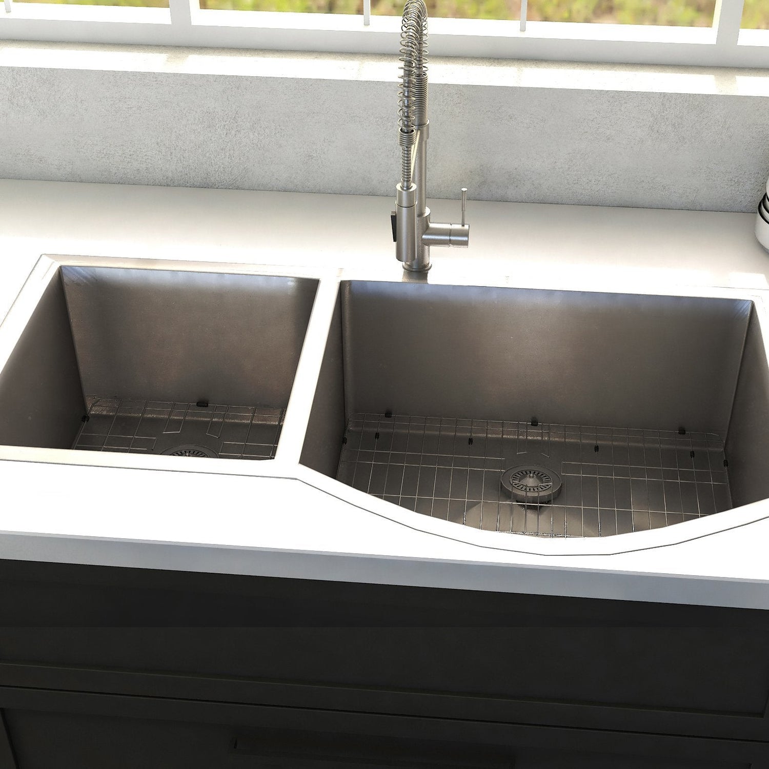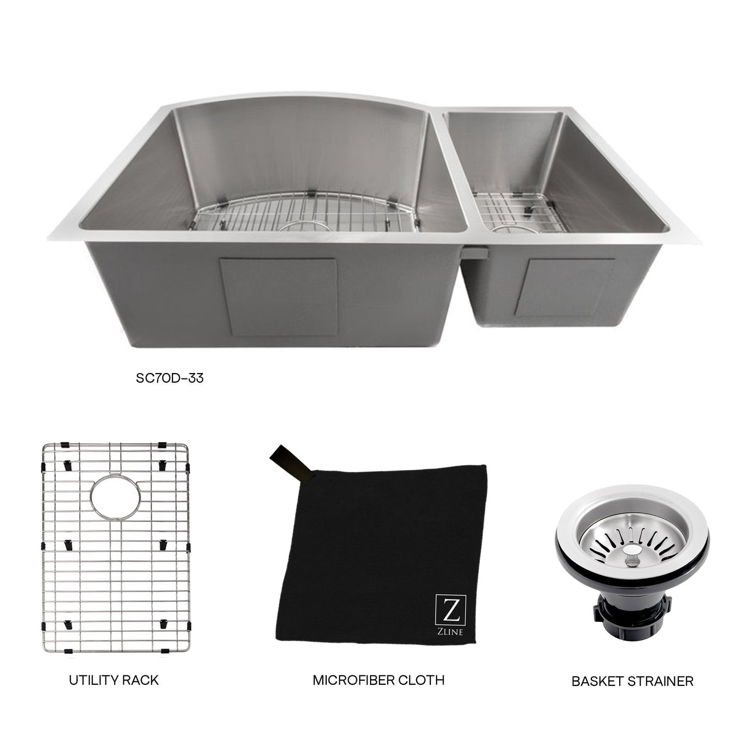 ZLINE 33 in. Cortina Undermount Double Bowl Kitchen Sink with Bottom Grid (SC70D-33)