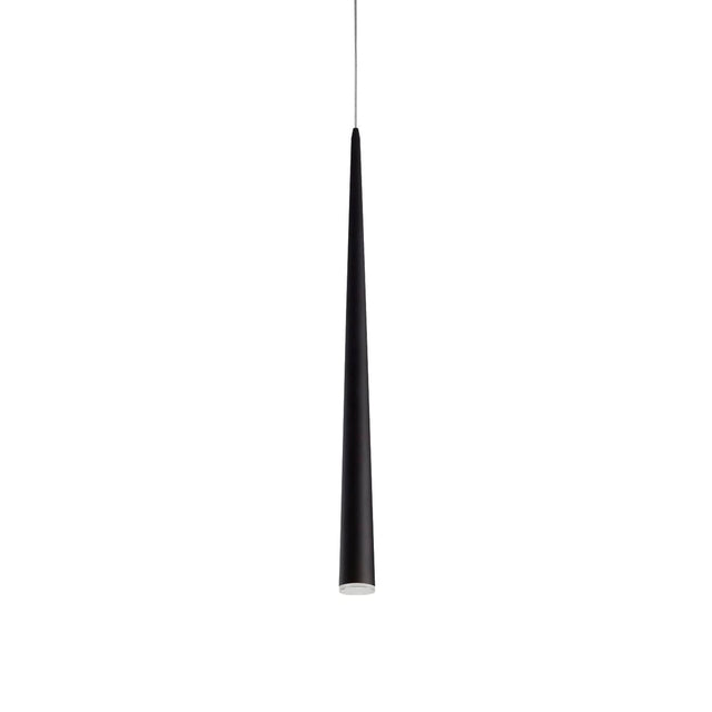 Single LED pendant, sleek conical shape with clear acrylic diffuser. Round canopy matches the selected finish. Equipped with our powerful 120V AC LED technology, available in three different sizes 12", 24" and 36"