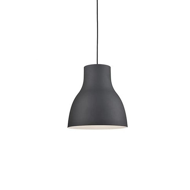 Single-lamp pendant with tapered aluminum shade showcasing powder-coated finishes. Exterior shade colors are either black, gray or white, with matte white interior. Suspended by cloth cable . Available in three sizes.