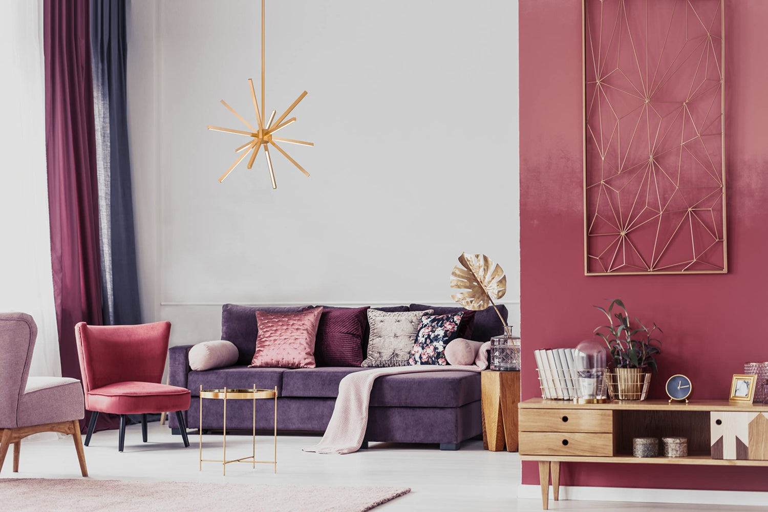 A plethora of thin linear lights converge at numerous angles into a central cluster. Simultaneously rectilinear and decorative the reduced scale from the initial Sirius provides an ideal accent to be used in multiples or as focal point. The fine diminutive components and airy structure merge in a lightweight elegant aesthetic.