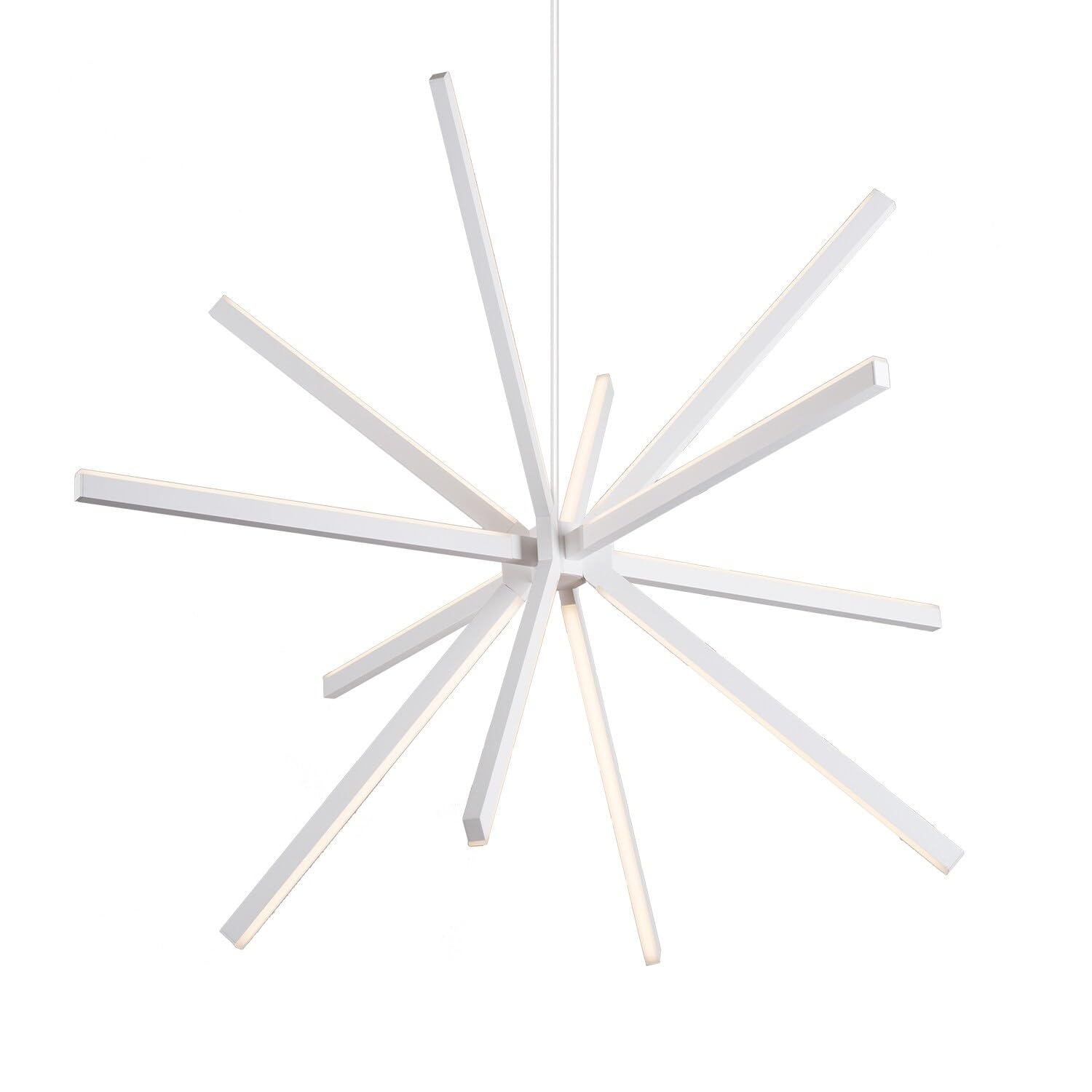Sirius' array of elements emanate from a single point in a starburst of light. A visual statement that draws the eye as the burnished finish interplays with the light, revealing shifting highlights and shadows. Contemporary and decorative.