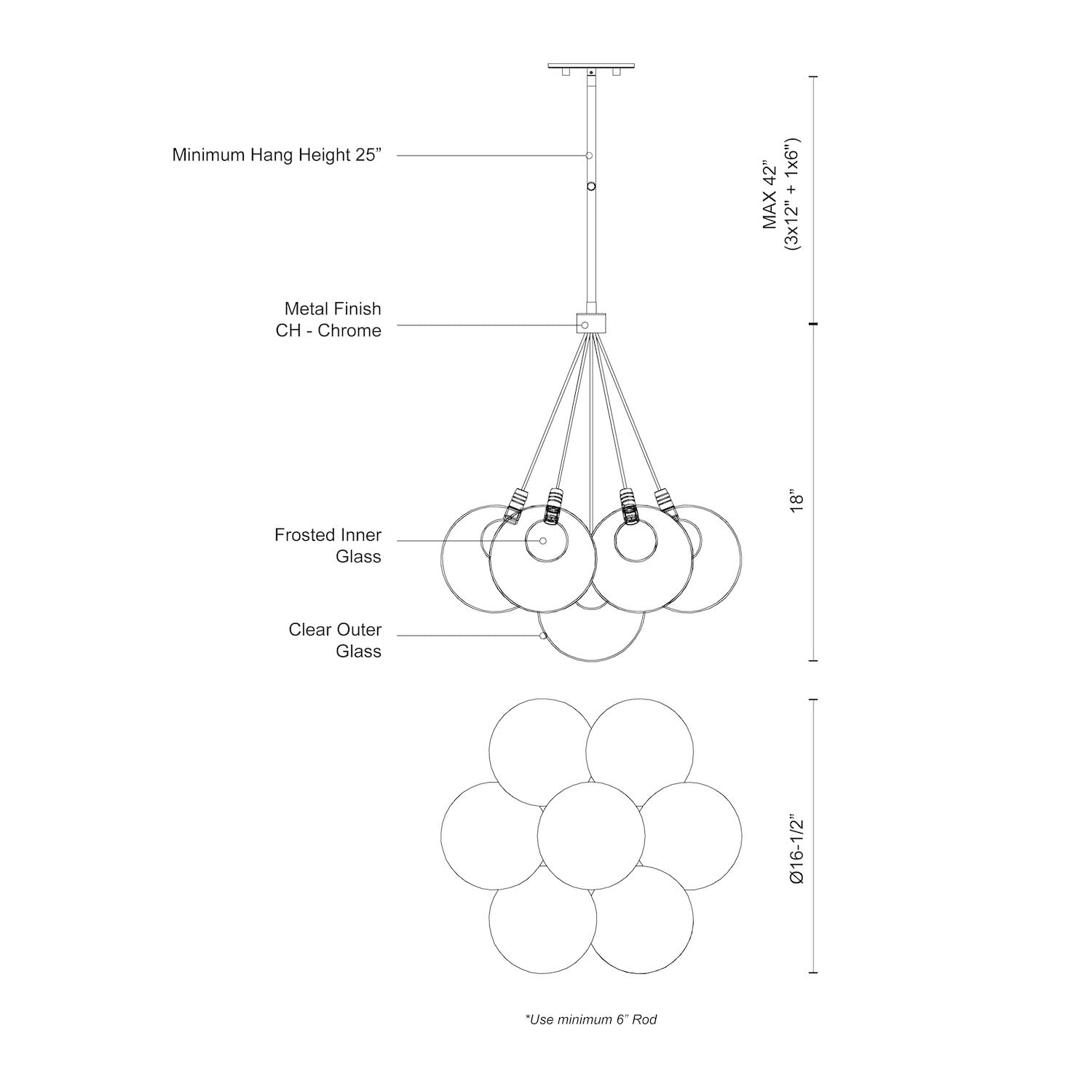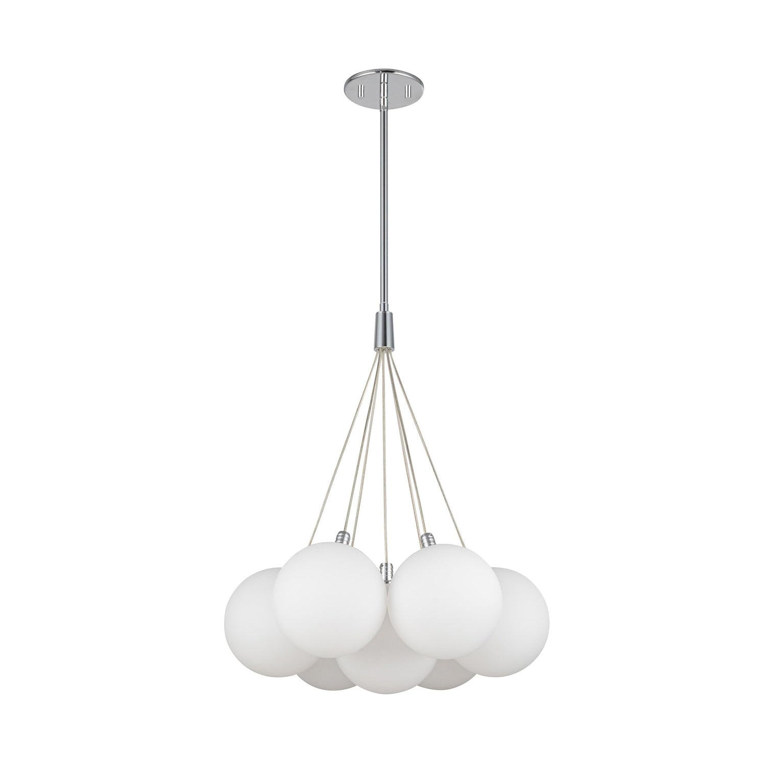 Produced in an array of configurations, the Bolla series is defined by the iconic double-wall glass globes. A frosted globe is perched within a transparent orb producing diffuser light from the satin aluminum LED socket. While elegant as a single pendant, the optional clustered bouquet creates a stunning impact.