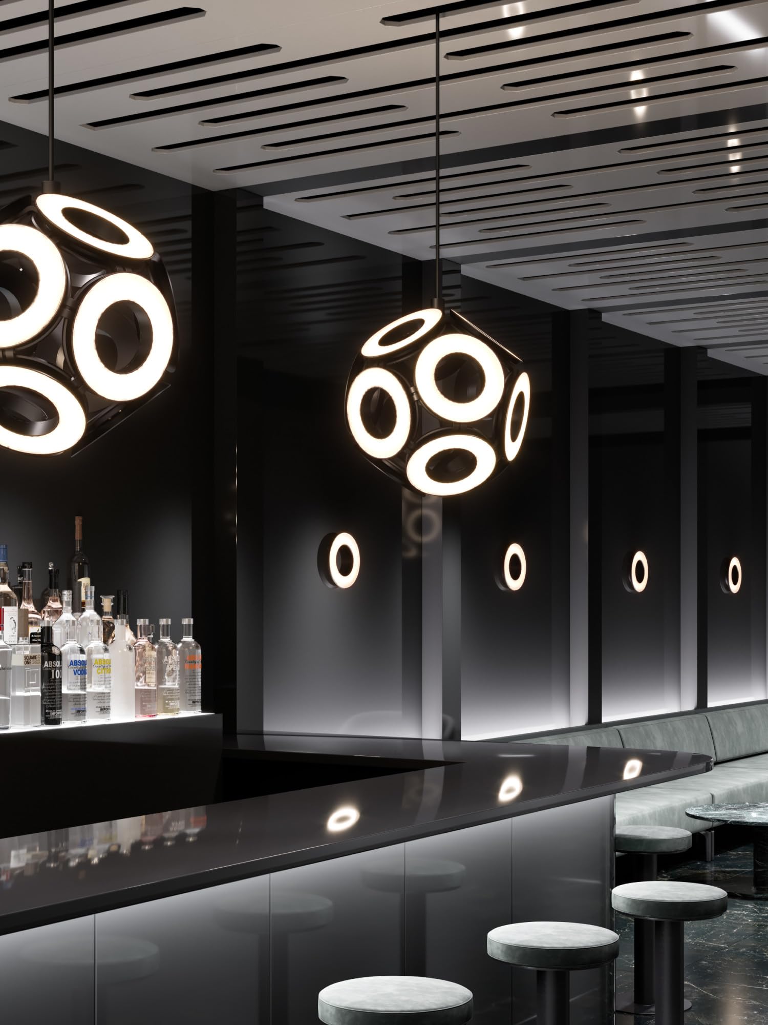 Kuzco CH51825-BK MAGELLAN 25" CHANDELIER BLACK FROSTED ACRYLIC SPHERE 125W 120VAC WITH LED DRIVER 3000K 90CRI