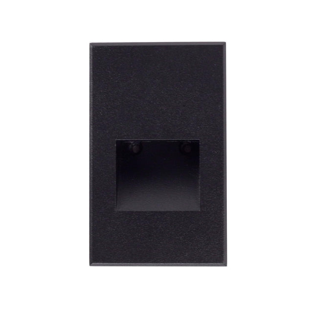 A horizontal rectangle-shaped recessed light in matte black, white powder, bronze or brushed nickel finish. The optically designed light control of Sonic's die cast Aluminum housing fully conceals the source. Ideal for step or courtesy light use. This fixture is rated for outdoor use but there is no reason it cannot be utilized indoors too. Only fits into a single gang box.