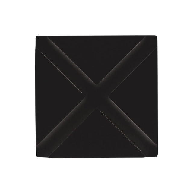 X marks the spot. Contrasting foreground and background planar surfaces allow for the light-emitting surfaces to be obscured within the Tac exterior wall fixture. As a graphical and geometric element the lamp amplifies in impact with repetition and pattern. The bold accent is available in simple Black or White powder-coated finishes.