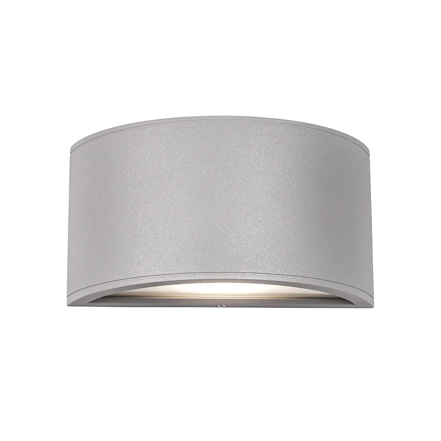 What appears to be a rectangle when looking head on, this exterior wall light is actually a half-circle shape when viewed from all other angles. Made from extruded and die cast Aluminum, in a black or gray powder coat finish, it also has a polymeric diffuser covering the LED light source for even light distribution.