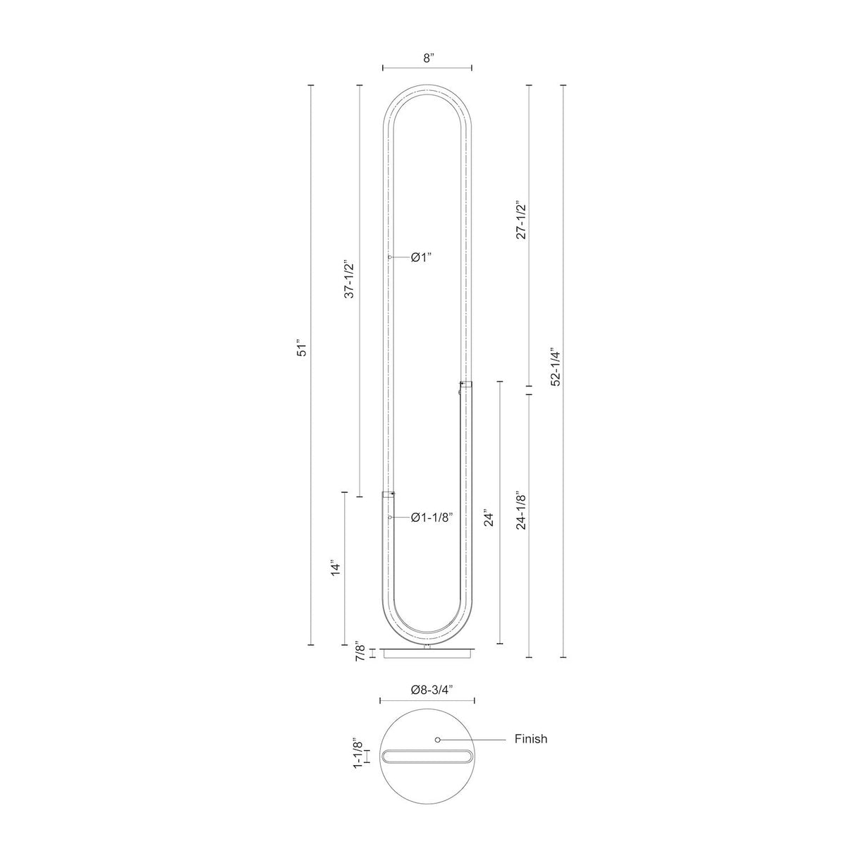 Steel base with die-cast aluminum body, acrylic frosted tube, matte powder-coated or plated finish
