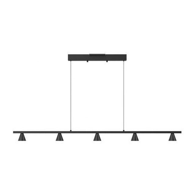 Multiple spun aluminum cones are connected inline and direct light downwards from the geometric linear pendant. The Dune series utilizes classic minimalist lamp shapes yet in reduced scale to elegant effect. The LED spot sources are focused by diminutive reflectors housed within the exquisitely turned shades. Available in multiple configurations and finishes.