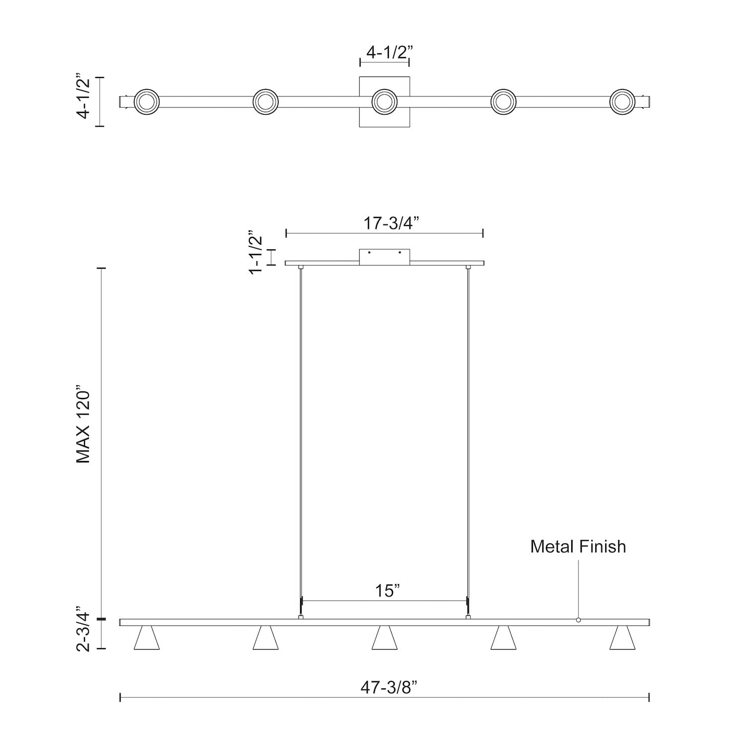 Multiple spun aluminum cones are connected inline and direct light downwards from the geometric linear pendant. The Dune series utilizes classic minimalist lamp shapes yet in reduced scale to elegant effect. The LED spot sources are focused by diminutive reflectors housed within the exquisitely turned shades. Available in multiple configurations and finishes.