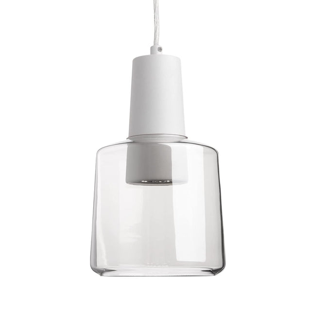 Retro yet stylish single LED pendant with clear glass and white metal housing or smoked transparent glass with concrete metal housing. rovided with our powerful 120V AC LED technology