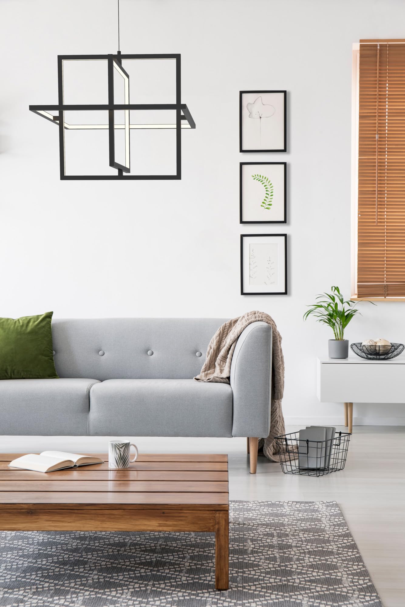 Mondrian series is composed from numerous rectilinear frames of light. The illuminated borders surrounding an open central void create an illusion of levitation. The airy design and negative space allow the fixture to visually blend into the environment. High-quality finish and simple forms coalesce in the elegant new product.