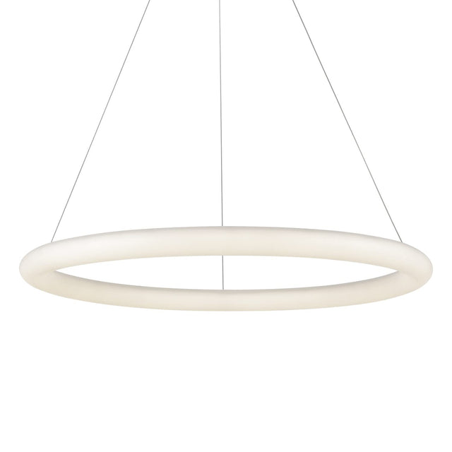 An illuminated circumference of bright uniform light the Cumulus Minor is devoid of extraneous detail appearing as a single endless loop. The miniscule ovoid profile of the polymeric ring condenses the lamp assembly into a compact yet airy visual footprint, a reduced scale from the substantial Cumulus pendant series. Available in multiple sizes.