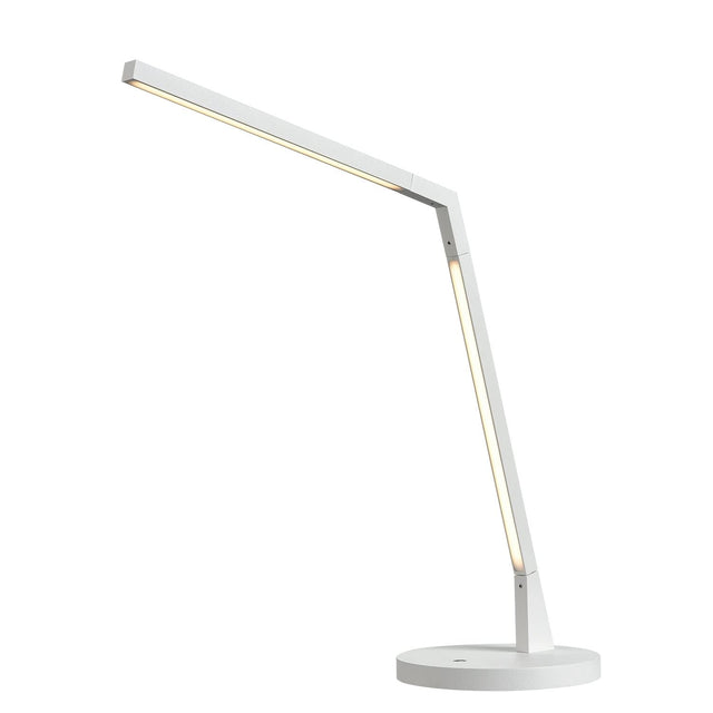 A thin angular line forms the gesture synonymous with the MITER floor and table lamp series. Employed within the top arm of the diminutive square profile is a linear LED source capped by an inset opal diffuser providing uniform soft illumination. The precisely machined aluminum body conceals further functionality with simple power connectors to enable easy assembly and added rotational adjustment. A handsome circular dimmer adorns the structure. Available in multiple finishes.