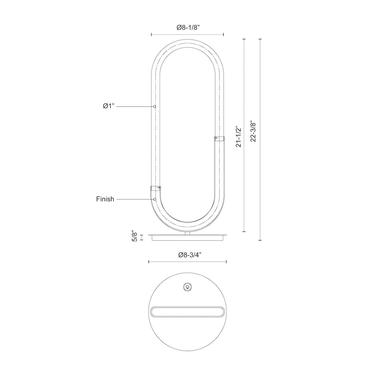 Steel base with die-cast aluminum body, acrylic frosted tube, matte powder-coated or plated finish