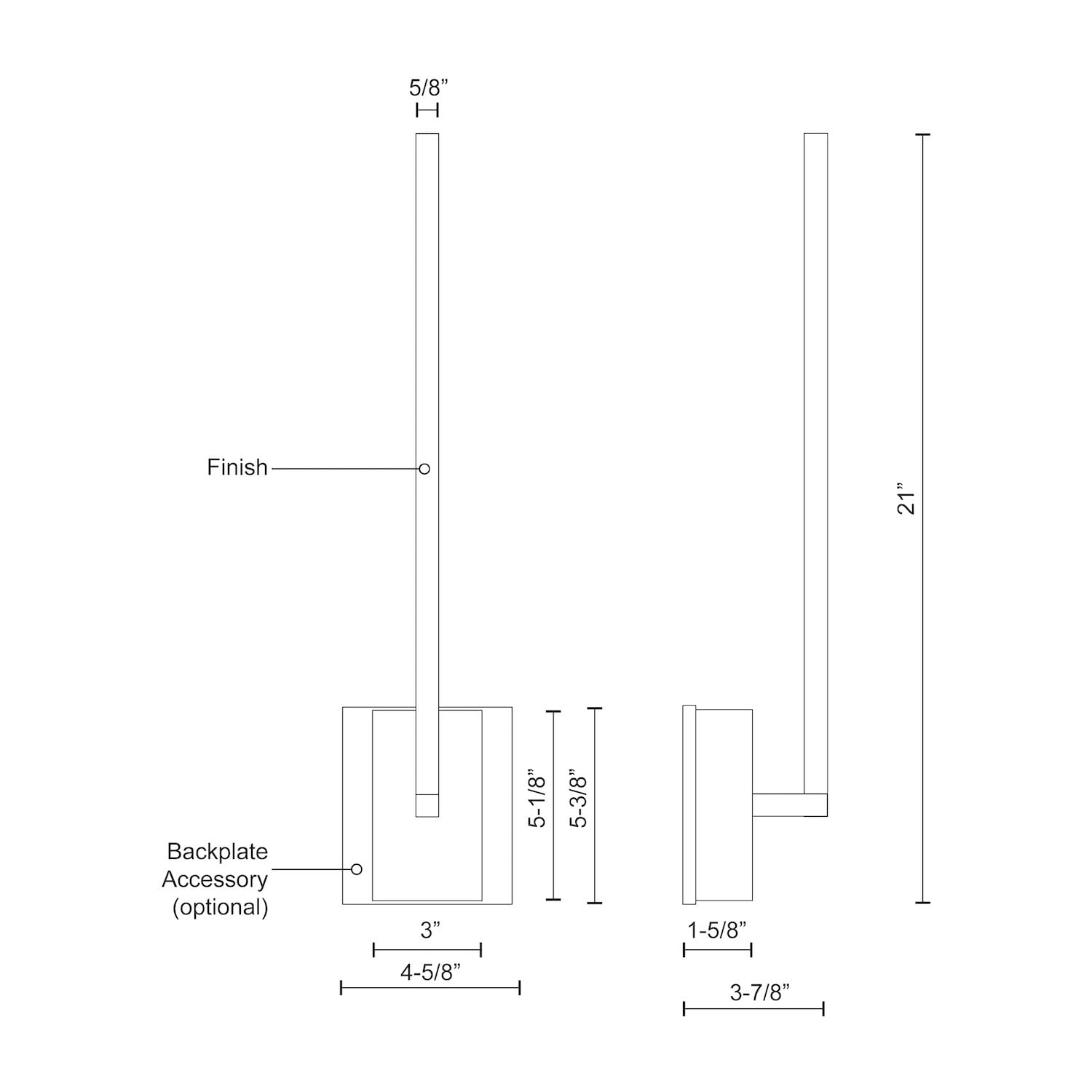 Square profile linear aluminum with rectangular wall mount. Inset opal polymeric diffuser. Finely textured plate or powder-coated finish. Wall emitting light with rotational adjustment.