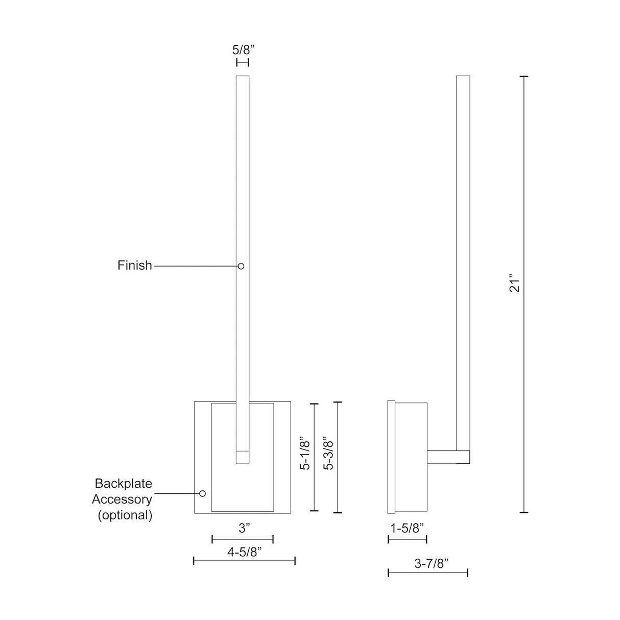 Square profile linear aluminum with rectangular wall mount. Inset opal polymeric diffuser. Finely textured plate or powder-coated finish. Wall emitting light with rotational adjustment.