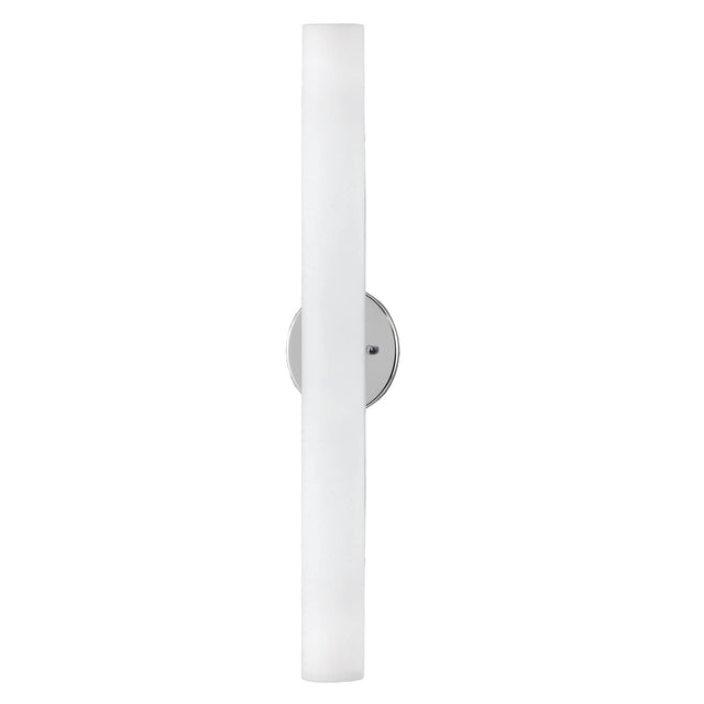 LED wall sconce with cylinder shaped white opal glass. Metal details in brushed nickel or chrome finish and is equipped with our powerful 120V AC LED technology. Available in for two different styles and sizes, view series for more details.