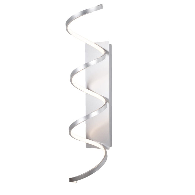 A looping radiant line casts light across space in a continuous helical path. The Synergy series is characterized by the rolled rectangular extrusion, which emits soft light through the silicon opal lens. Configured in both linear and ring arrangements, the arcing aluminum allows the curated finishes to be visible at every angle.