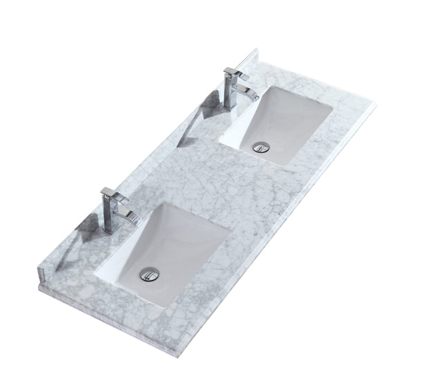Forever 60" Single Hole White Carrara Marble Countertop with Double Rectangular Ceramic Sinks Laviva 313SQ1H-60-WC