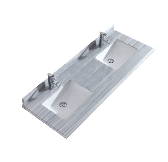 Forever 60" Single Hole White Stripes Marble Countertop with Double Rectangular Ceramic Sinks Laviva 313SQ1H-60-WS