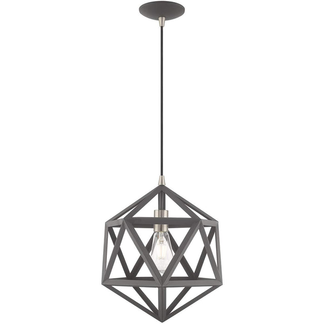 Livex Lighting 41328-76 Geometric Shade - 13" One Light Mini Pendant, Scandinavian Gray Finish with Scandinavian Gray Metal Shade