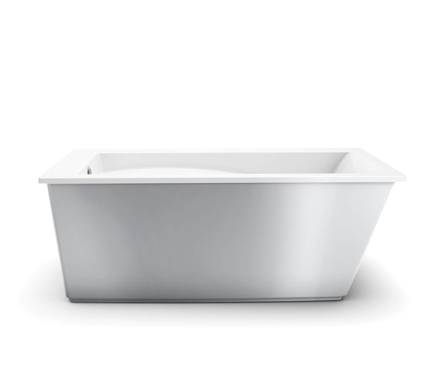 MAAX 105571-000-001-101 Optik 6032 F Acrylic Freestanding End Drain Bathtub in White with Sterling Silver Skirt