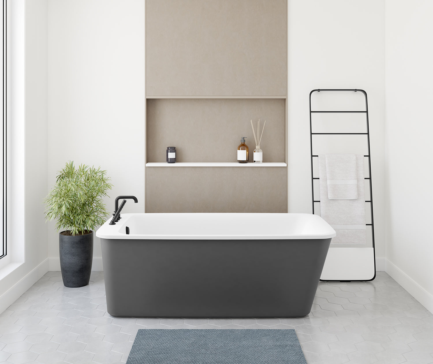 MAAX 105798-000-001-107 Lounge AcrylX Freestanding End Drain Bathtub in White with Thundey Grey Skirt