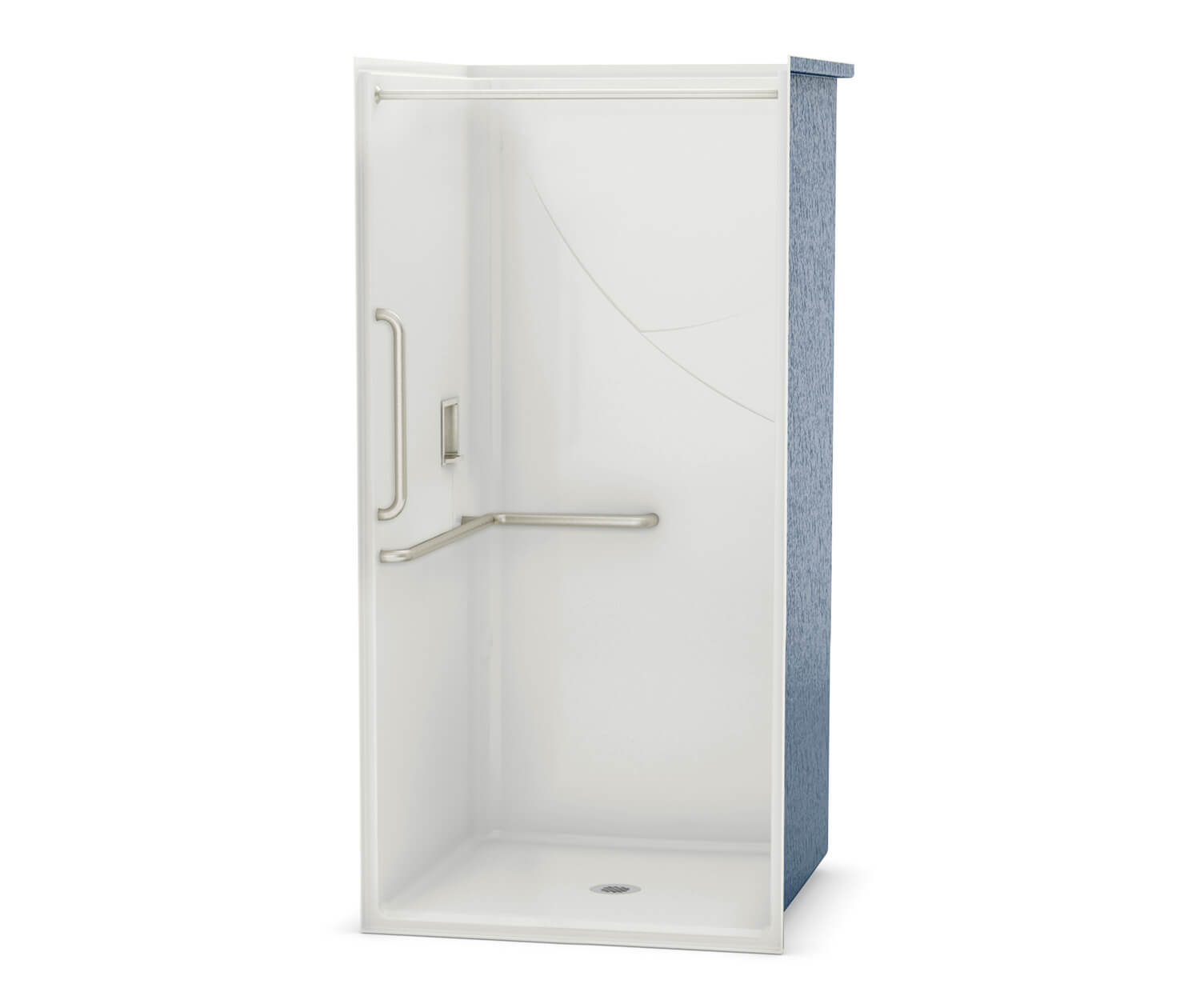 MAAX 106066-000-002-118 OPS-3636-RS - L-shaped and Vertical Grab Bar AcrylX Alcove Center Drain One-Piece Shower in White