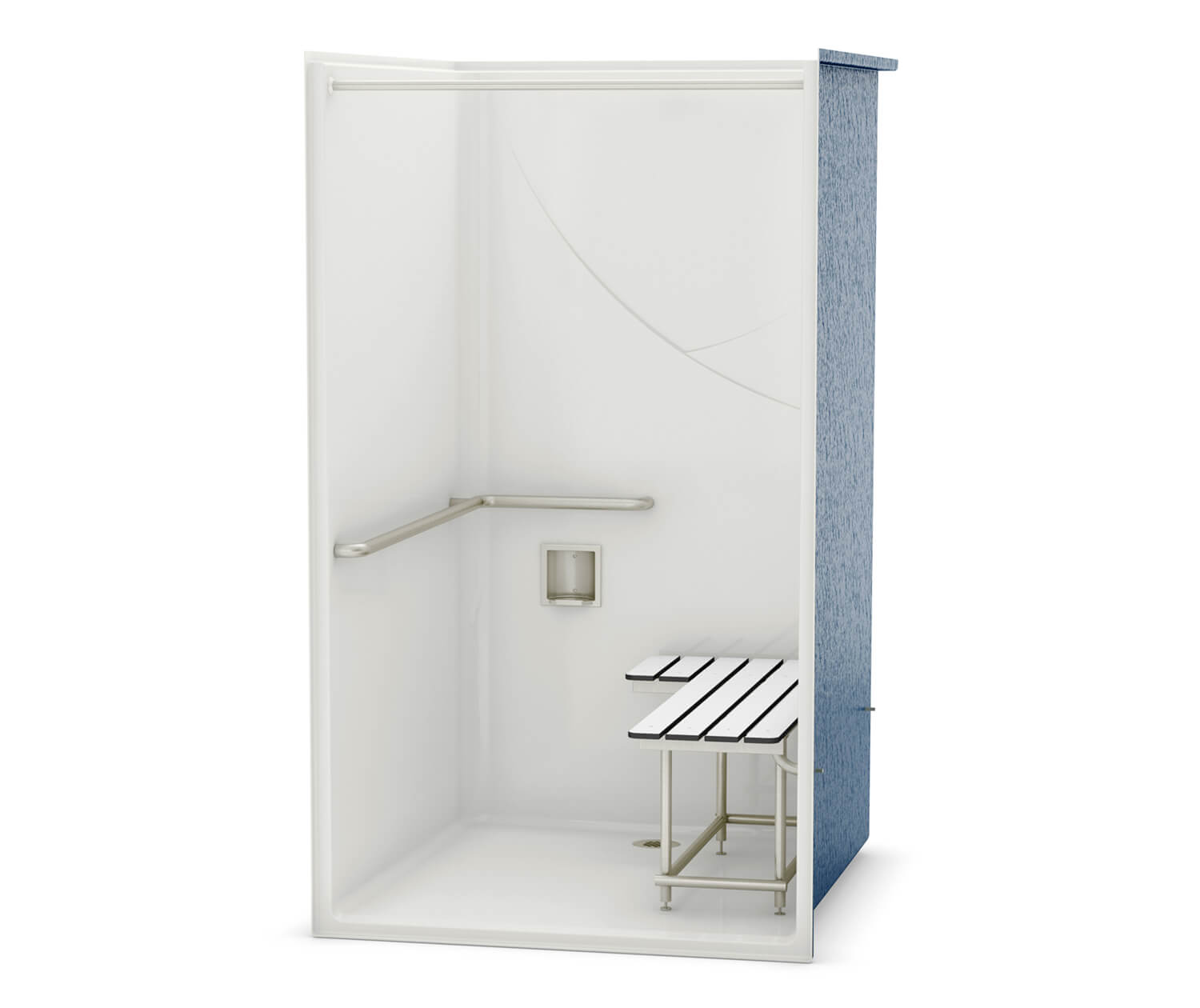 MAAX 106085-000-002-144 OPS-4248-RS - California Title 24 Grab Bar and Seat AcrylX Alcove Center Drain One-Piece Shower in White