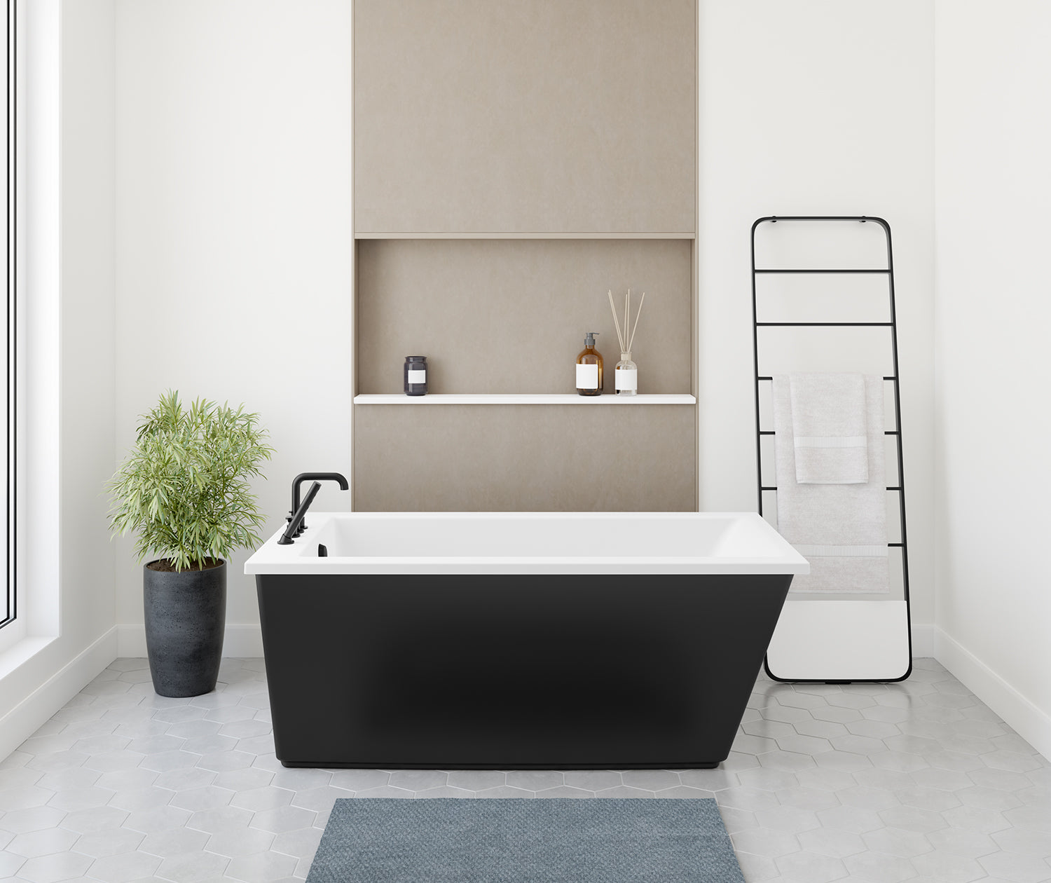 MAAX 106426-000-002-105 Elinor 6032 AcrylX Freestanding End Drain Bathtub in White with Black Skirt