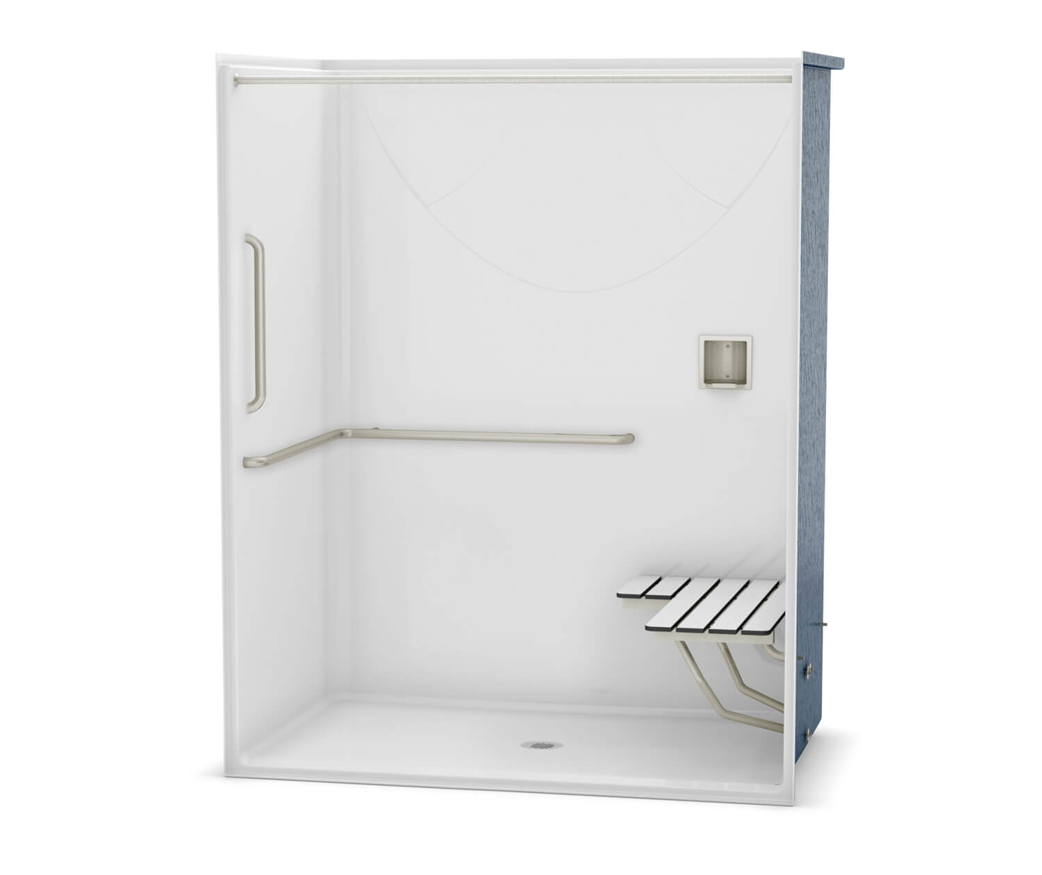 MAAX 106778-000-002-132 OPS-6036 - ANSI Grab Bar and seat AcrylX Alcove Center Drain One-Piece Shower in White