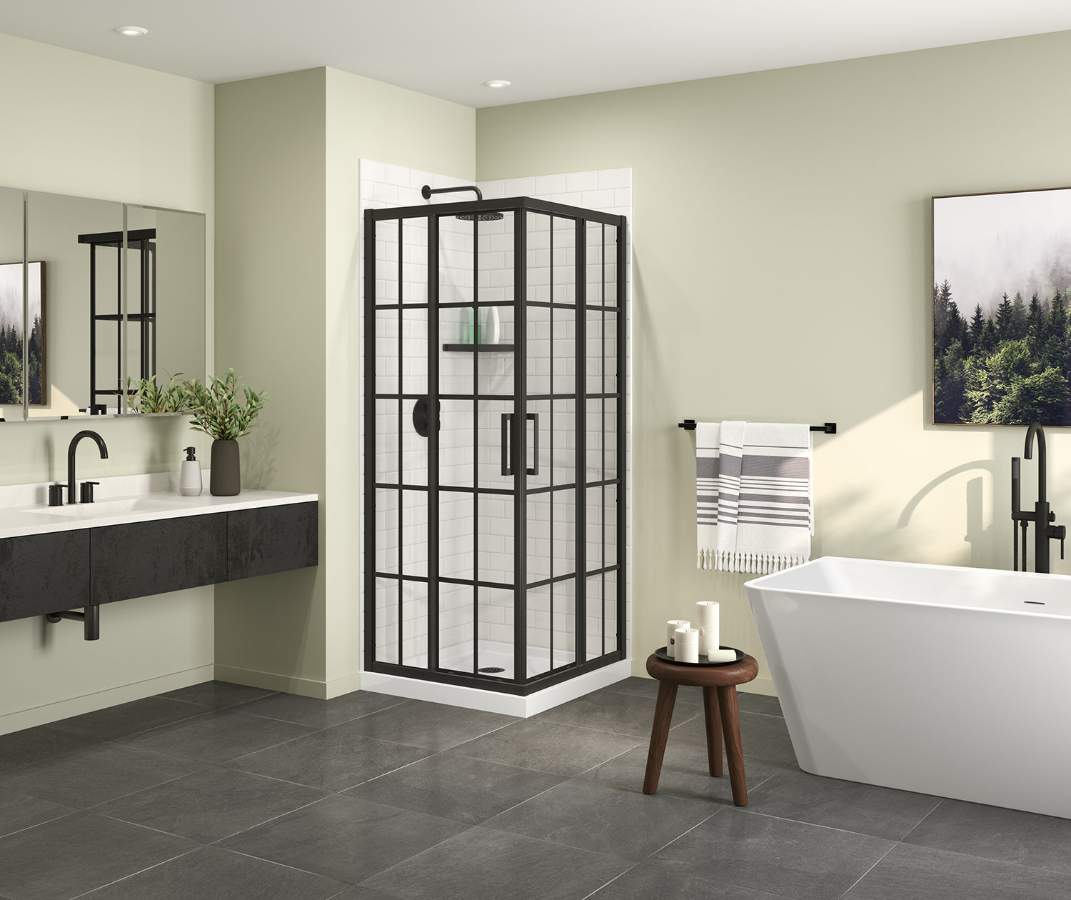 MAAX 107484-977-340-000 Scarlet 32 x 32 Acrylic Corner Drain Shower Kit in White with French Glass in Matte Black