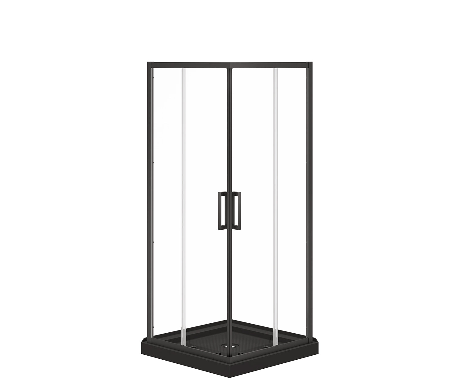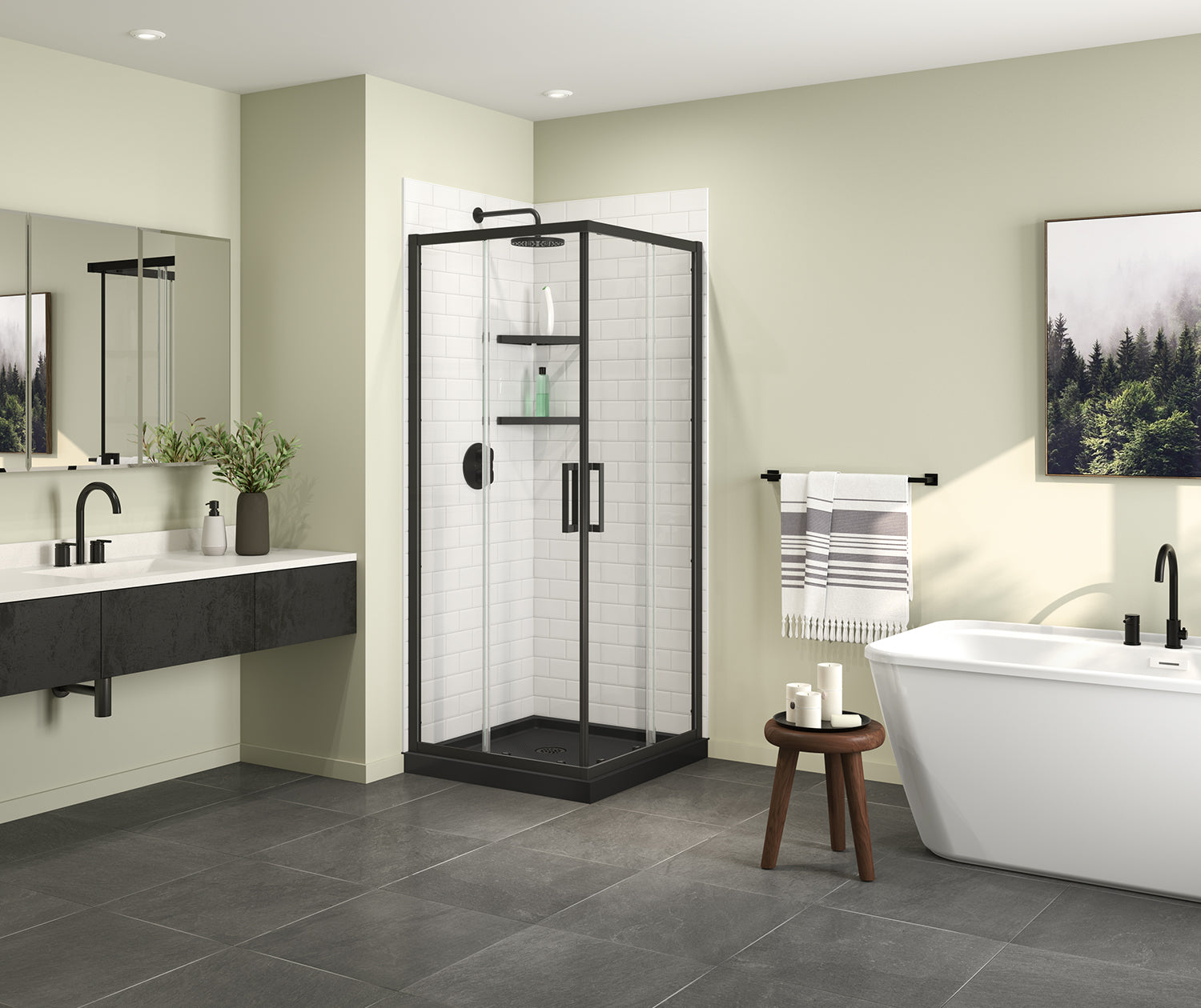 MAAX 107485-900-340-000 Scarlet 32 x 32 Acrylic Corner Drain Shower Kit in Black with Clear Glass in Matte Black