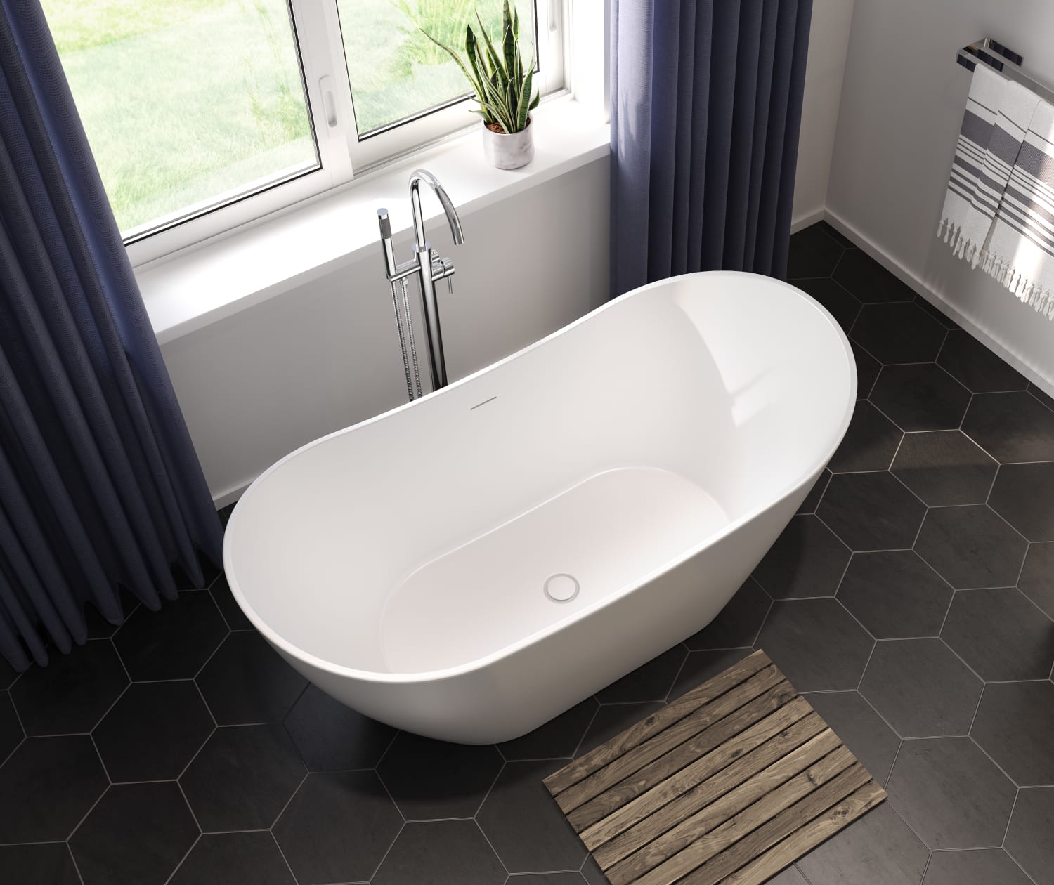 MAAX 107510-000-001-000 Mahaba 60 x 29 Acrylic Freestanding Oval Center Drain Bathtub in White
