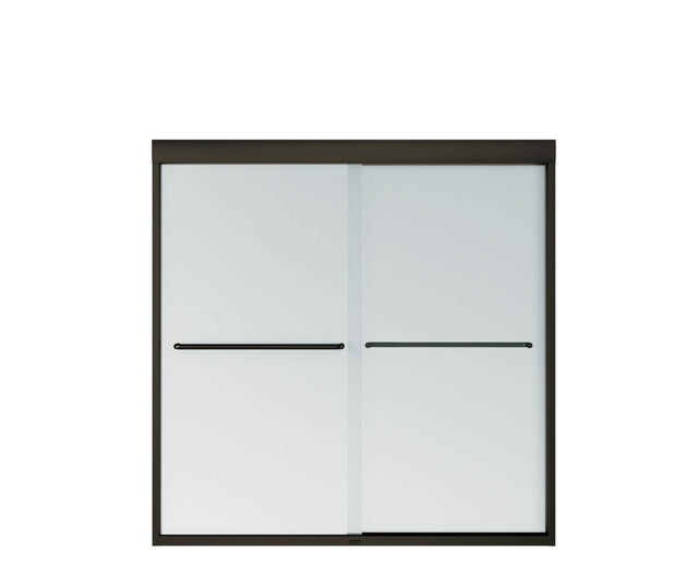 MAAX 135661-978-172-000 Aura 55-59 x 57 in. 6 mm Sliding Tub Door for Alcove Installation with Frosted glass in Dark Bronze