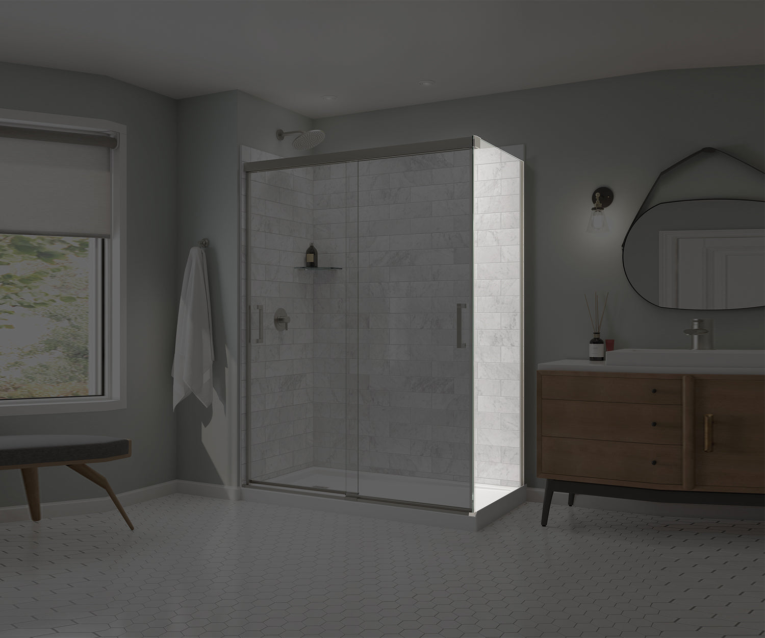 MAAX 136560-900-305-000 Incognito 76 Return Panel for 32 in. Base with Clear glass in Brushed Nickel