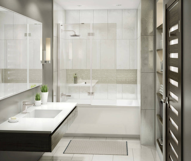 MAAX 137502-900-305-000 Edge Duo 42 x 58 in. 8 mm Pivot Tub Screen for Alcove Installation with Clear glass in Brushed Nickel