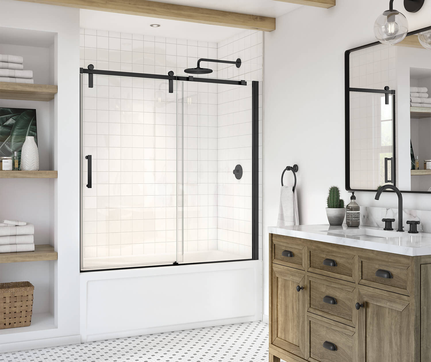 MAAX 137682-900-340-000 Outback 55 ¼ - 58 1/2 x 57 in. 8mm Sliding Tub Door for Alcove Installation with Clear glass in Matte Black