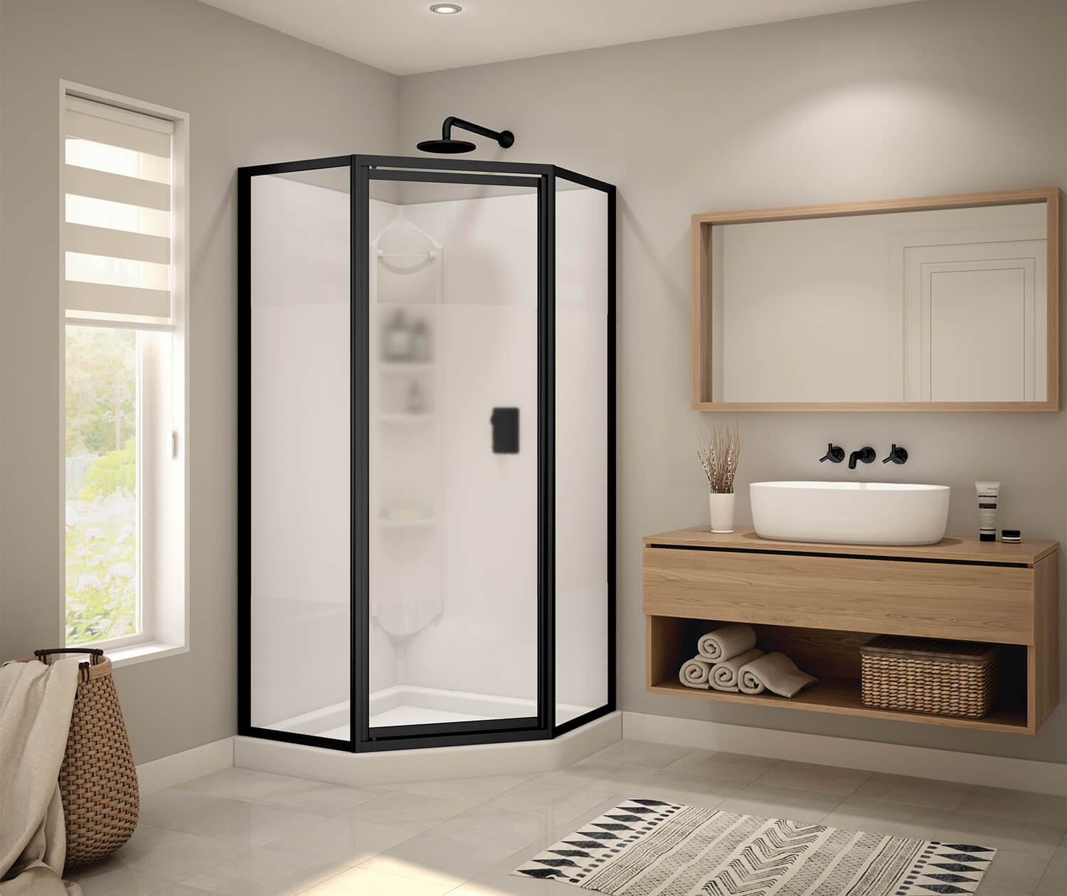 MAAX 300022-000-129-103 Orchid 38 x 38 Polystyrene Center Drain Shower Kit in White with Centre Silk glass in Matte Black