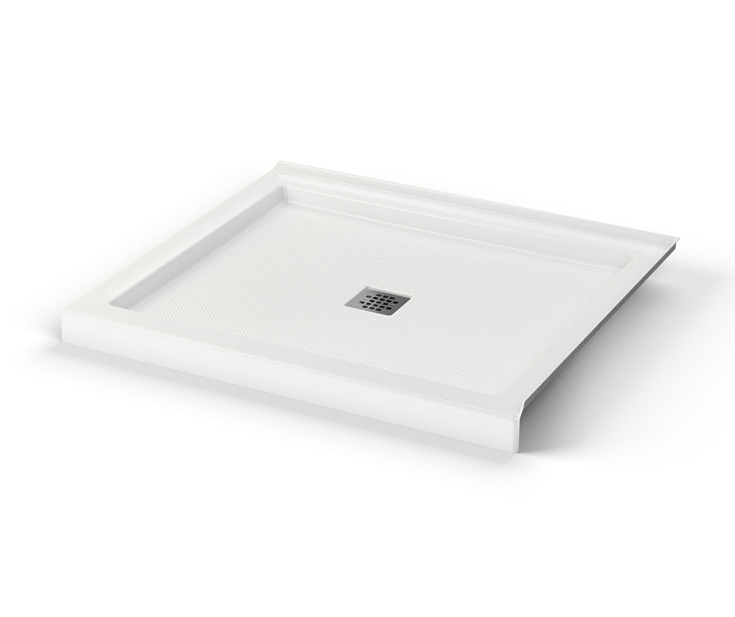 MAAX 420034-543-001-100 B3Square 4236 Acrylic Corner Right Shower Base in White with Anti-slip Bottom with Center Drain