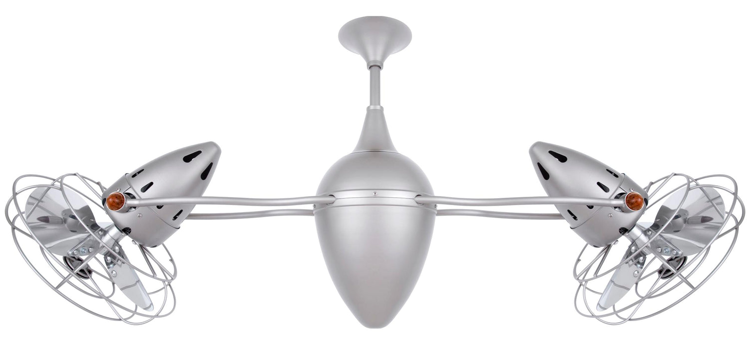 Matthews Fan AR-BN-MTL-DAMP Ar Ruthiane 360° dual headed rotational ceiling fan in brushed nickel finish with metal blades for damp location.