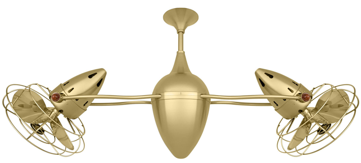 Matthews Fan AR-BRBR-MTL Ar Ruthiane 360° dual headed rotational ceiling fan in brushed brass finish with metal blades.