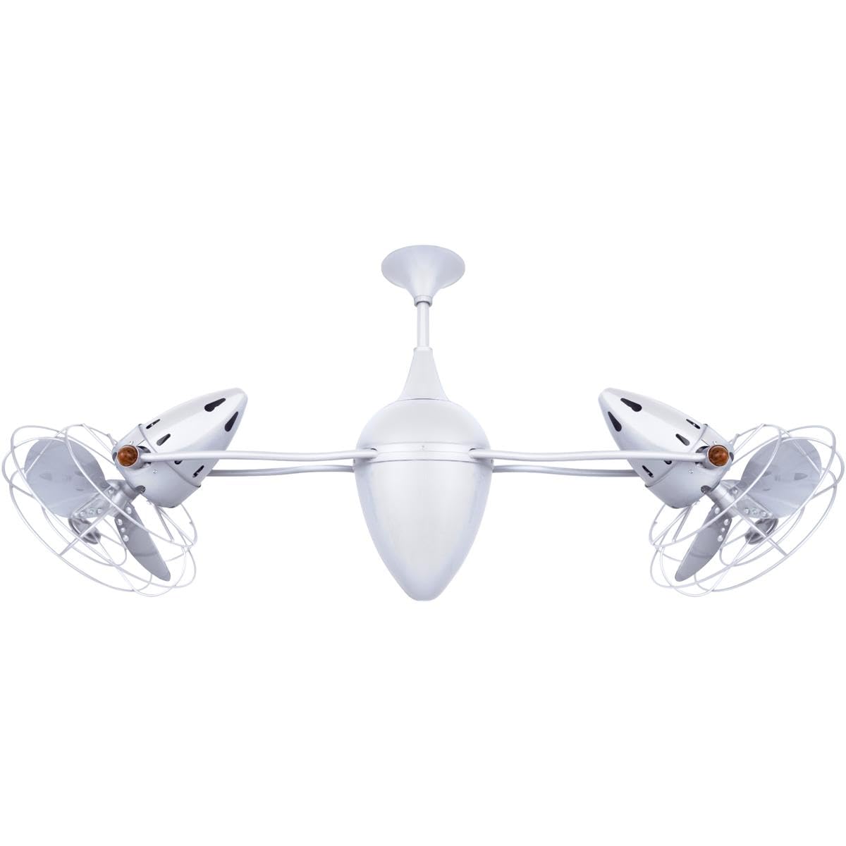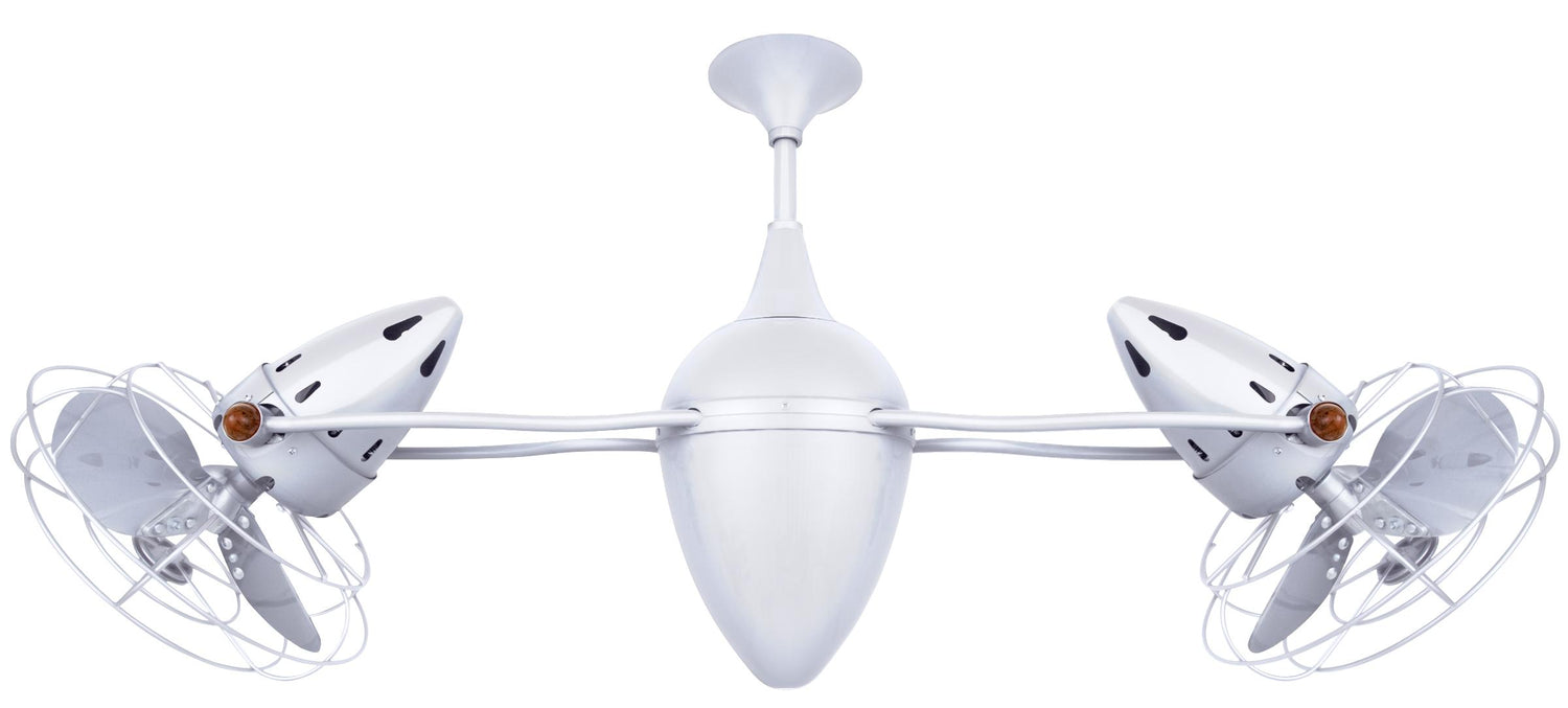 Matthews Fan AR-WH-MTL Ar Ruthiane 360° dual headed rotational ceiling fan in gloss white finish with metal blades.