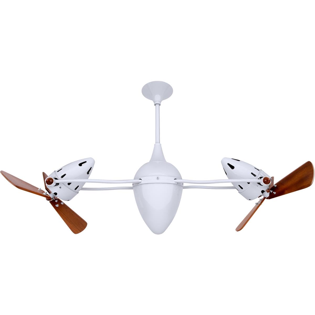 Matthews Fan AR-WH-WD Ar Ruthiane 360° dual headed rotational ceiling fan in gloss white finish with solid sustainable mahogany wood blades.