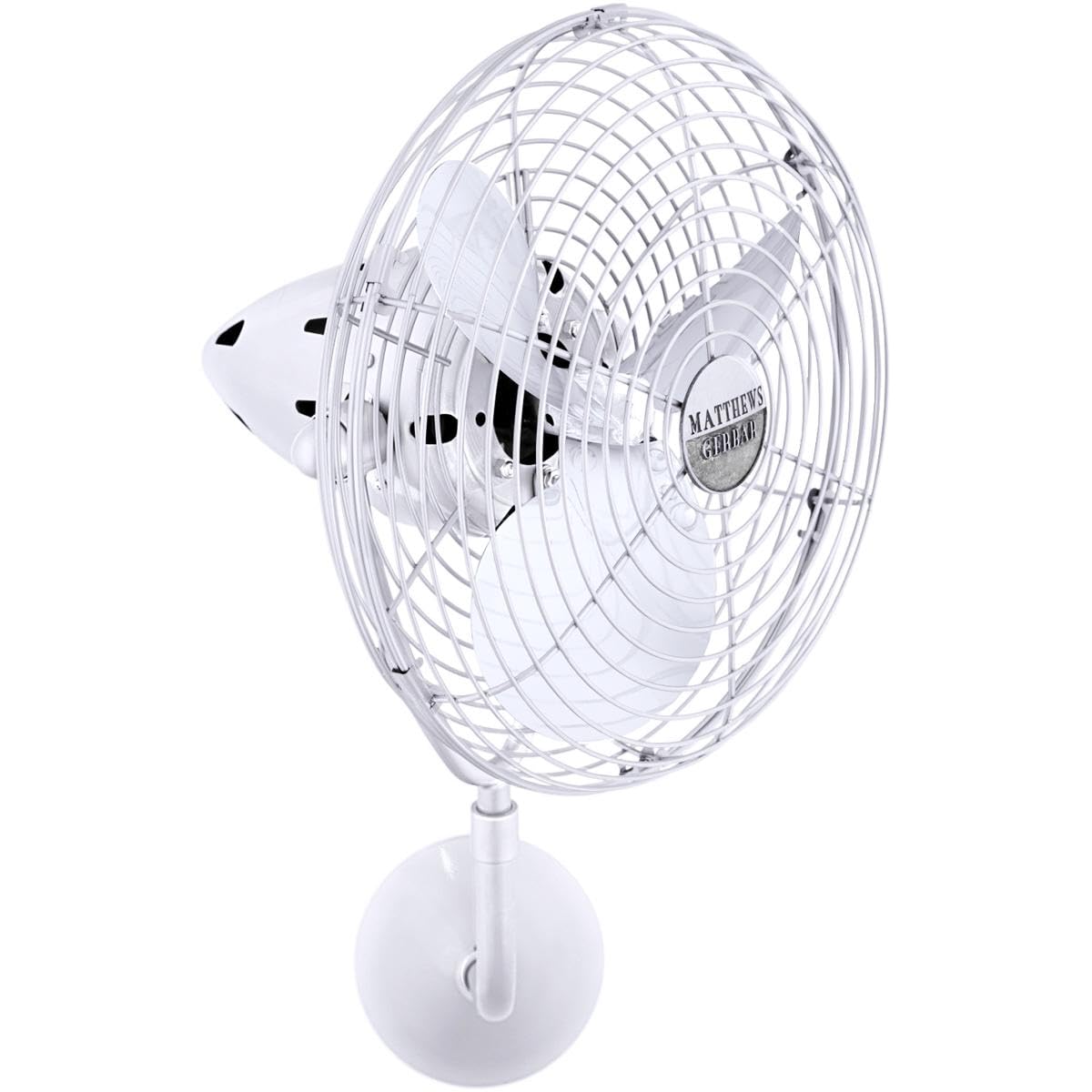Matthews Fan BP-WH-MTL Bruna Parede wall fan in Gloss White finish.